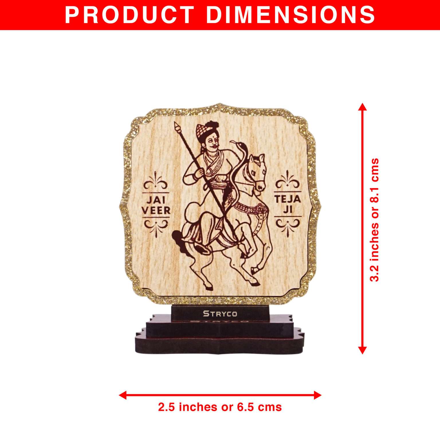 Jai Veer Teja Ji Car Dashboard Idol | Lotus Series Wooden Car Photo | Rajasthani Folk Deity Car Stand Figurine | 8cmx6.5cm
