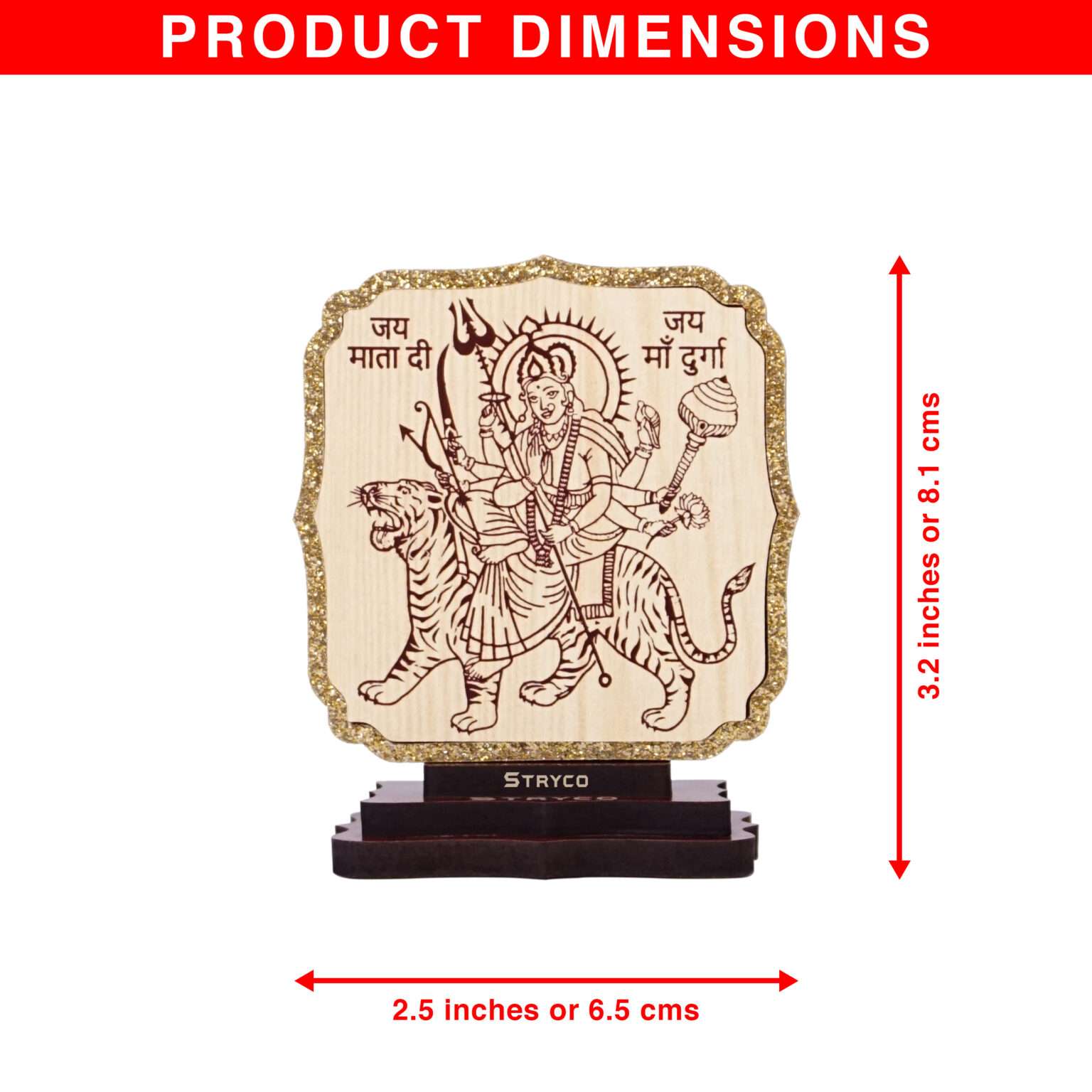 Durga Mata Ji Wooden Car Dashboard Idol | Lotus Series Car Photo | Goddess Car Stand Figurine Showpiece | 8cmx6.5cm