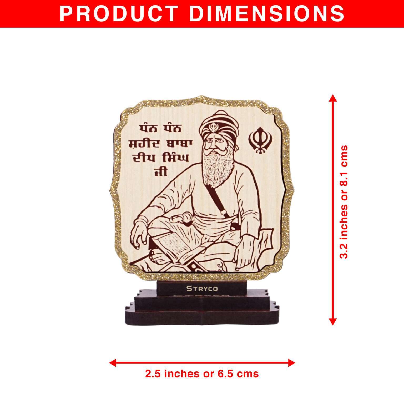 Baba Deep Singh Ji Wooden Car Photo | Lotus Hi Sparkle Series Car Dashboard Idol | Sikh Religious Car Showpiece Accessory | 8cmx6.5cm