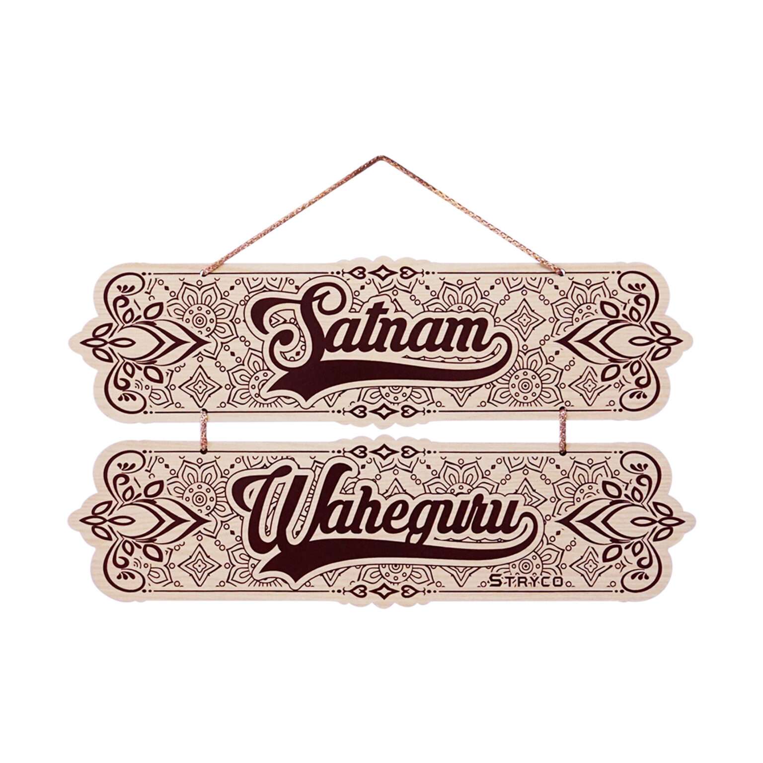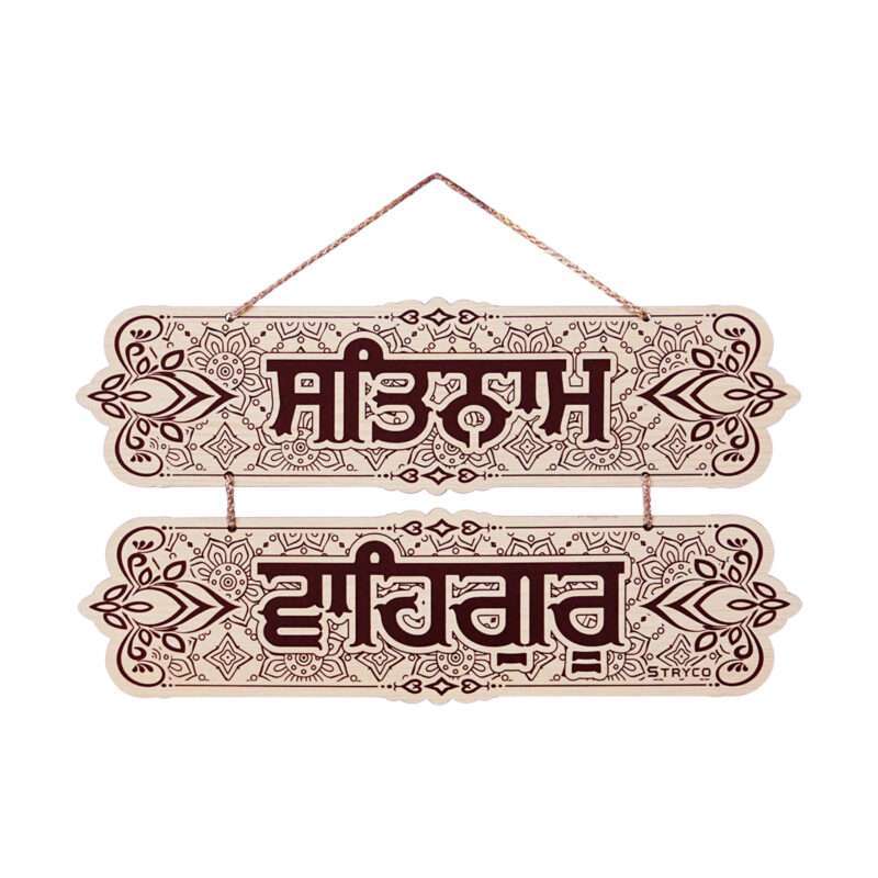 Satnam Waheguru Designer Wall Hanging | Wooden Wall Art Decor Item | Sikh Gurbani Decoration Product | 15inches Wide