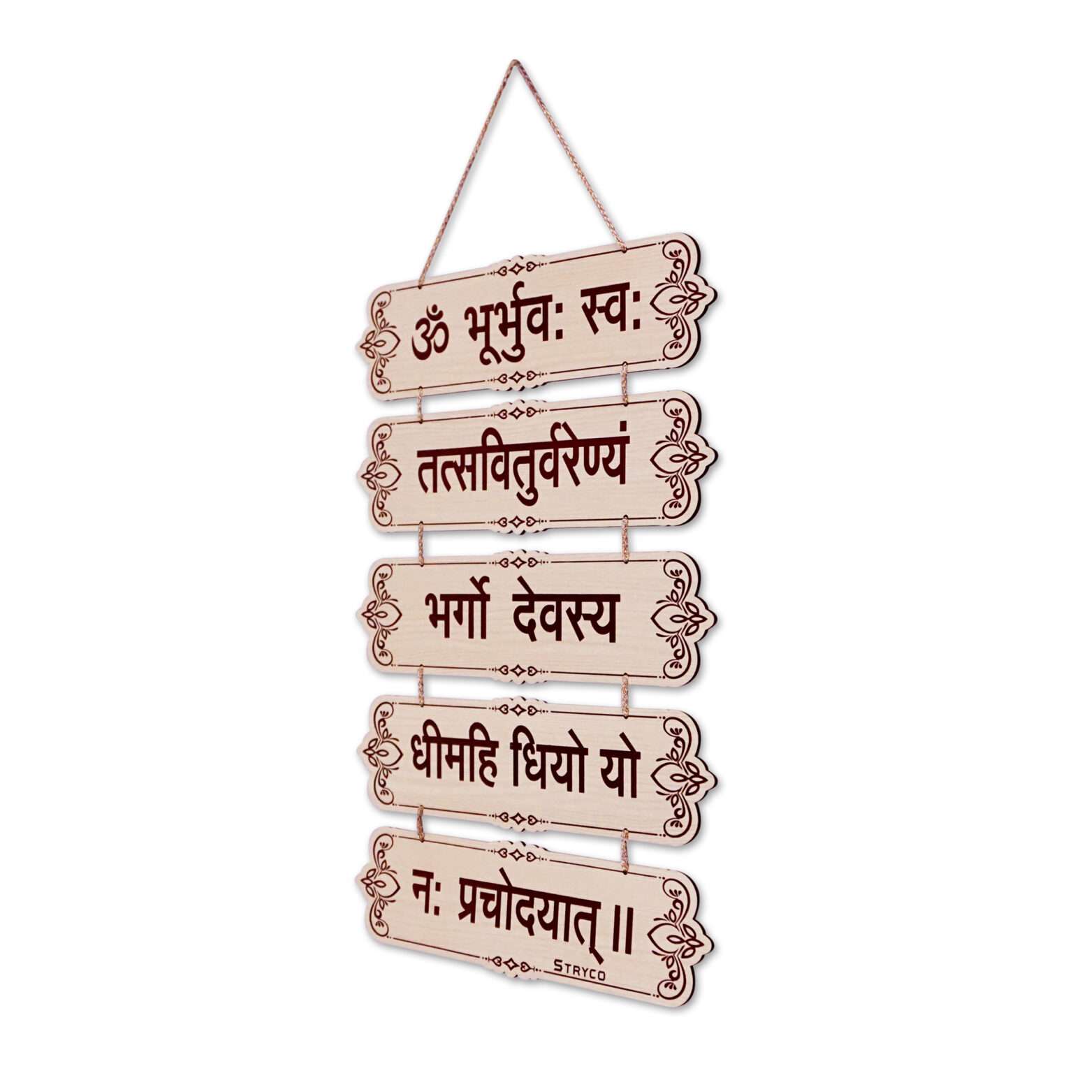 Gayatri Mantra Wooden Wall Hanging | Multi Part 5 Plates Door Hanging | Spiritual Home Decor Accessory | 1x2feet